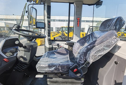 除了优异的性能表现,L972H装载机舒适性也是一大亮点,莫总直言:“驾驶这款装载机,最直观的感受就是操作特别舒适,视野很开阔、密封性特别好。座椅很舒服,液晶仪表显示也很高档,信息一应俱全,能让司机对装载机的状态了然于胸” 。