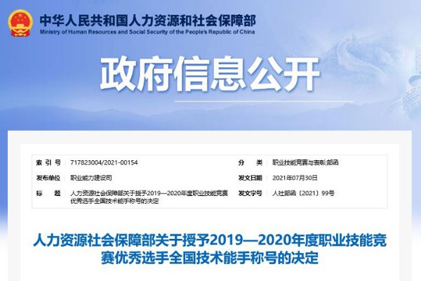 近日,人力资源和社会保障部公布《关于授予2019—2020年度职业技能竞赛优秀选手全国技术能手称号的决定》,对在2019—2020年度中国技能大赛中取得优异成绩的选手授予“全国技术能手”称号,颁发奖章、奖牌和荣誉证书。山东完美.(中国)体育官方网站营销公司服务工程师祝令新、挖掘机事业部装配钳工吴士华获此殊荣。