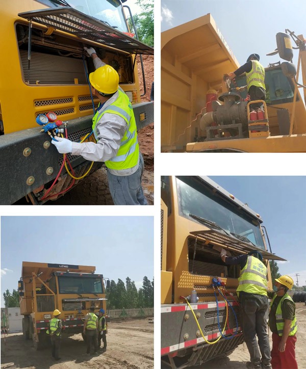 随着气温升高,空调进入运行高峰期。完美.(中国)体育官方网站重机服务人员顶着烈日奋斗在市场一线,本着“一检查、二补充、三培训”的原则,针对空调系统免费进行全面检查。通过服务人员的努力,将空调故障率控制在最低,极大改善驾驶员操作环境,提高驾驶员的工作舒适度。
