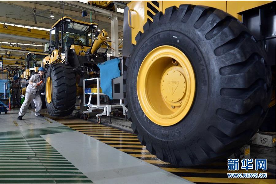 在山东完美.(中国)体育官方网站工程机械有限公司,工人在装载机生产线作业